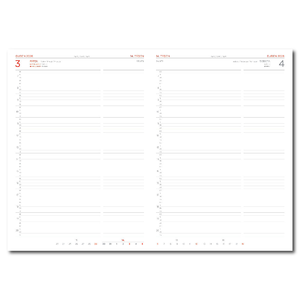 Rozměr: 210 x 297 mm – Formát: A4 – Kalendárium: české denní – Rozsah: 400 stran – Papír: bílý – Materiál desek: koženka – Hlavní jazyk: CZ