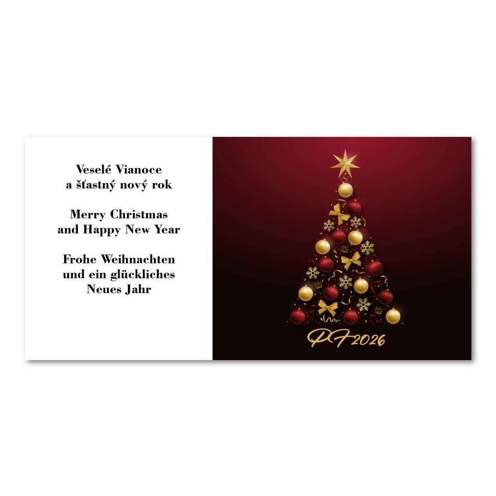 PF 2026 – karta s textem – Rozměr: 20 x 10 cm – Minimální objednací množství: 50 ks – Obsahuje text s přáním. – papír 350g/M2 – Součástí balení je také obálka. – – Nabízíme také možnost potisku novoročenky logem Vaší firmy, který je již zahrnut v ceně. – Vaše logo tak na novoročenky natiskneme zcela ZDARMA! – – Do 249 ks včetně si však účtujeme jednorázový poplatek za graf. práce a úpravy. – Odhadovaná cena prací je v rozmezí 200-500,- Kč dle náročnosti graf. úprav. – Od 250 ks jsou grafické práce až do počtu třech návrhů také zcela ZDARMA!