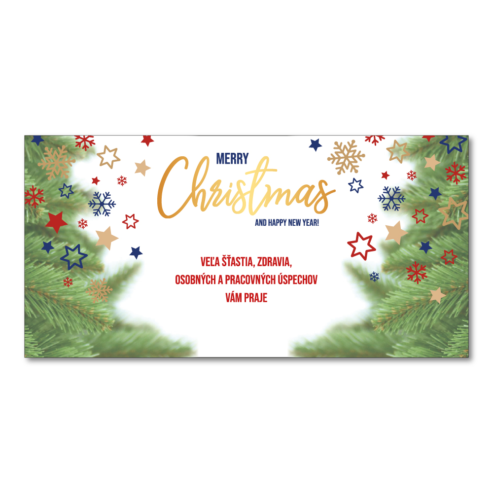 PF 2026 – karta s textem – Rozměr: 20 x 10 cm – Minimální objednací množství: 50 ks – Obsahuje text s přáním. – papír 350g/M2 – Součástí balení je také obálka. – – Nabízíme také možnost potisku novoročenky logem Vaší firmy, který je již zahrnut v ceně. – Vaše logo tak na novoročenky natiskneme zcela ZDARMA! – – Do 249 ks včetně si však účtujeme jednorázový poplatek za graf. práce a úpravy. – Odhadovaná cena prací je v rozmezí 200-500,- Kč dle náročnosti graf. úprav. – Od 250 ks jsou grafické práce až do počtu třech návrhů také zcela ZDARMA!